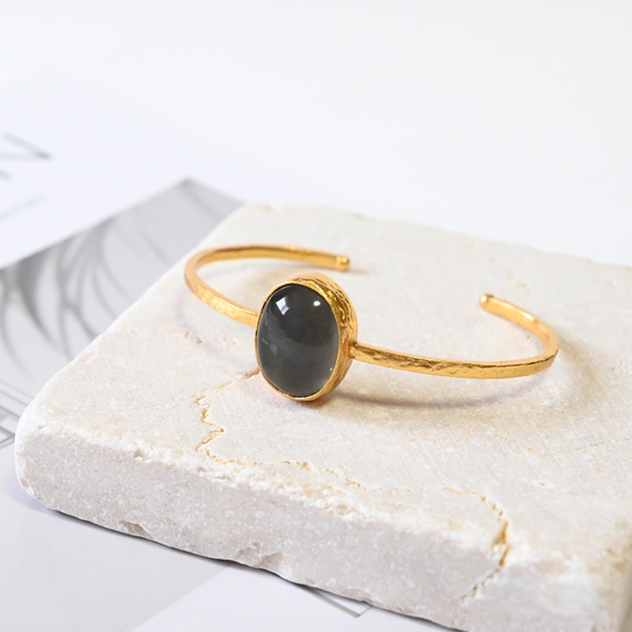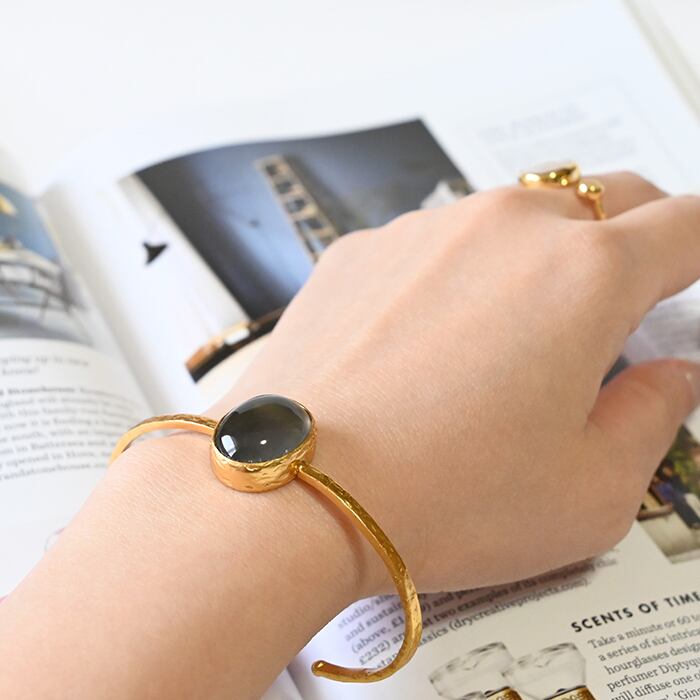 幻想的でシックな雰囲気のあるブラックムーンストーンのバングル。