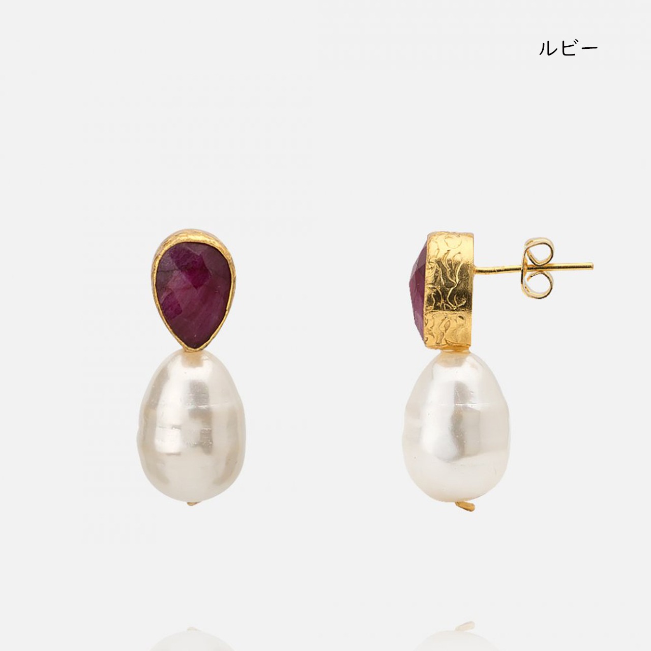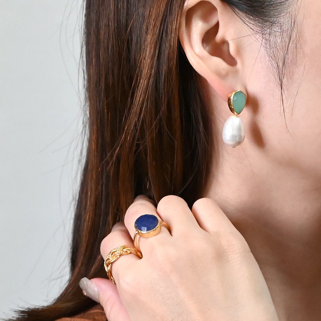 真鍮に22Kメッキ(ニッケルフリー)、天然石