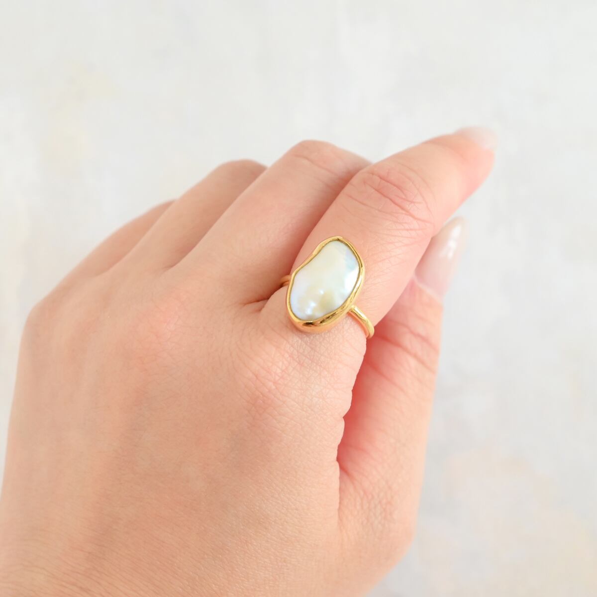 一点物のバロックパールを使用した上品なリング。