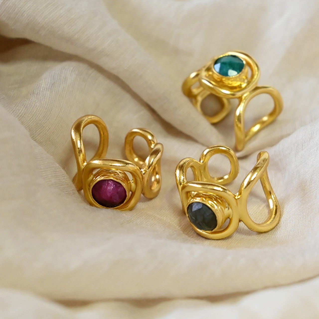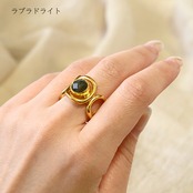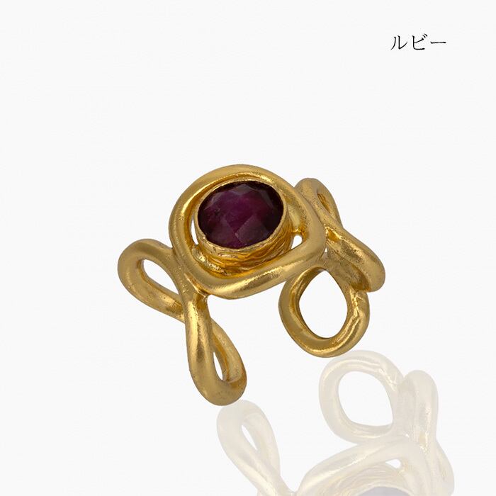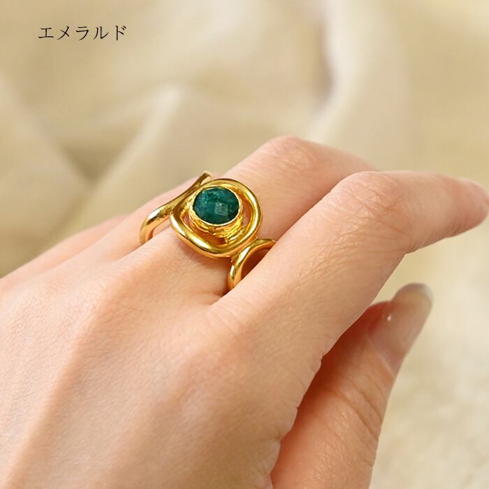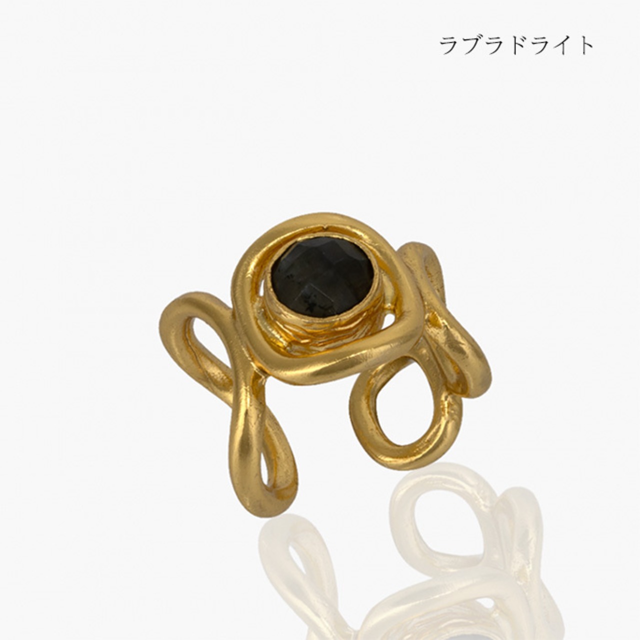 モードな雰囲気漂うカーブデザインにラウンド型の天然石を合わせたリング。